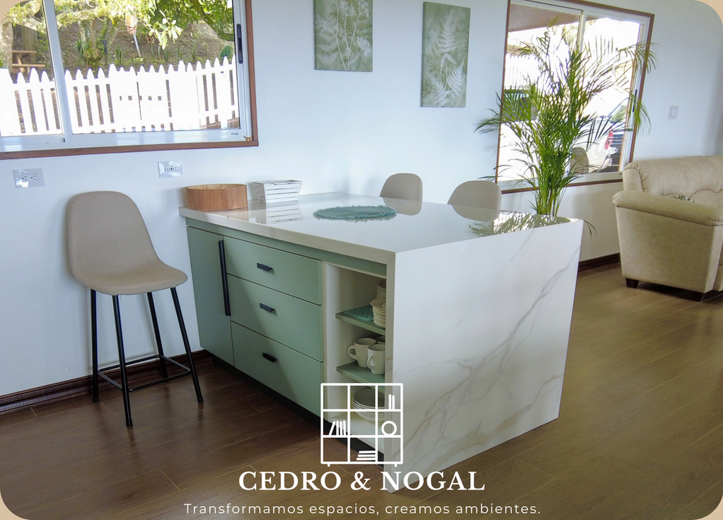 Cada elemento fue cuidadosamente seleccionado por los dueños, con la intención de crear una cocina moderna, funcional y con carácter, ideal para la vida cotidiana y los momentos especiales en familia.